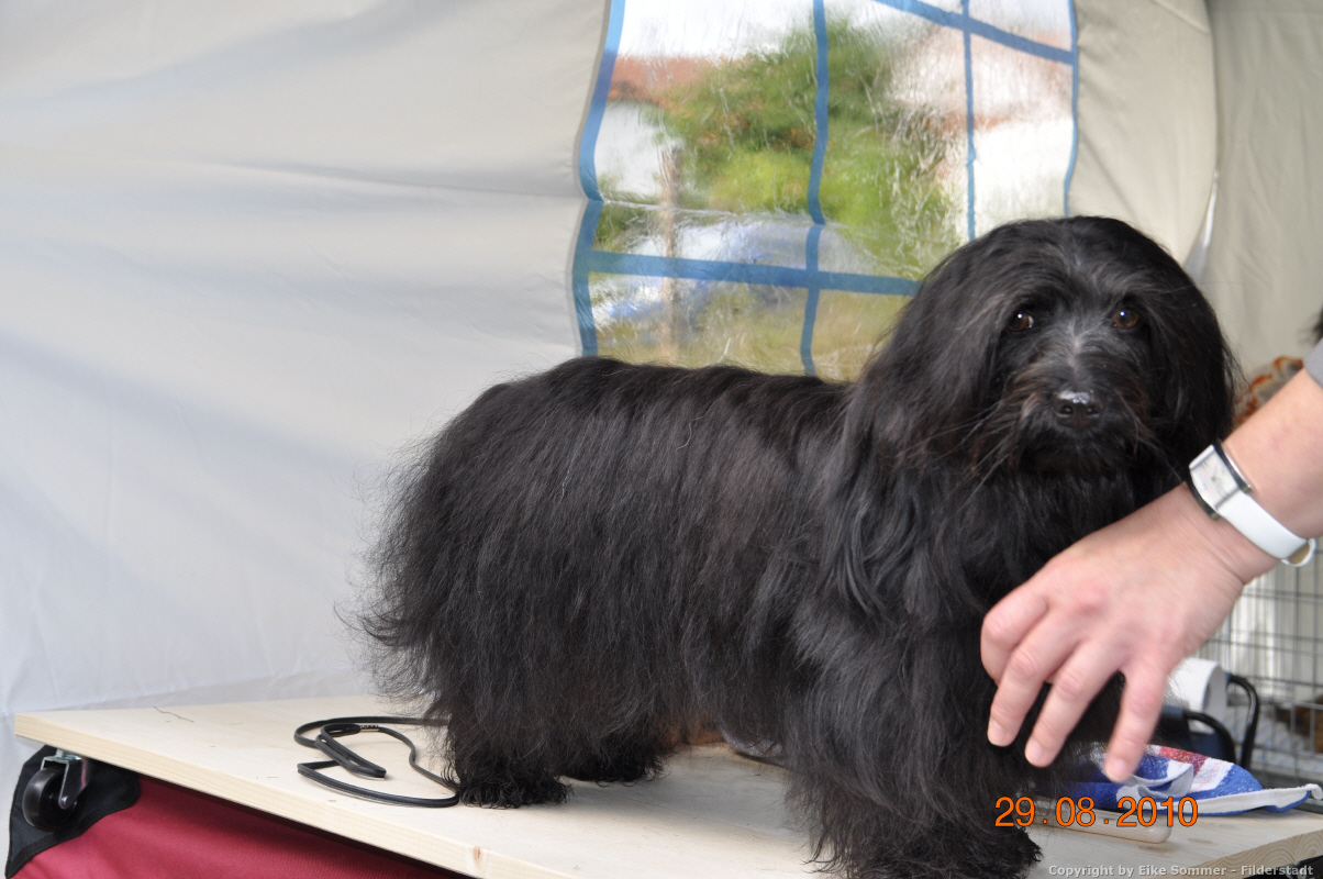 Wir waren recht früh dran und konnten schon den Pavillon aufbauen bis die anderen Havi-Leute eingetroffen sind. Je mehr Hunde kamen, desto aufgeregter wurde ich und plötzlich war mein Bart ganz nass. Oh je – jetzt kam Bettina mit Handtuch und Bürste bewaffnet zu mir und hat gebürstet, was das Zeug hält. Nachdem wir Havaneser schon am Anfang drankommen sollten, hatte Bettina alle Hände voll zu tun, damit ich ‚trockengelegt‘ wurde.