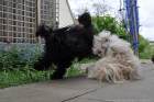 Roxy ist anderen Hunden gegenüber wesentlich aufgeschlossener als Loona. Anfangs wird erst mal vorsichtig abgeklärt, wie an den anderen Hund heranzugehen ist. Menschen sind kein Problem, trotzdem wird von Anfang an klar gestellt, dass Roxy sich nicht von jedem anfassen geschweige denn füttern lässt (daran sind schon viele Tierarzthelferinnen, Verkäuferinnen und Hunde-Trainer/innen nahezu verzweifelt ...). Auch mit Roxy trainieren wir bei der SV OG Bernhausen Agility.